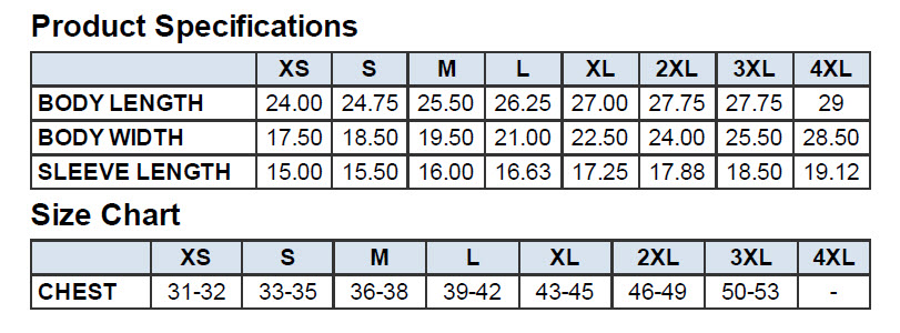 XS, S, M, L, XL, 2XL, 3XL, 4XL