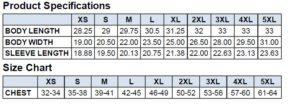 XS, S, M, L, XL, 2XL, 3XL, 4XL, 5XL, 6XL